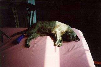Recently one of our beans cut their paw. This needed a huge blue bandage which you can see in the left hand picture.